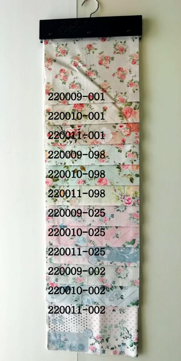 Gli articoli 220009, 220010 e 220011 sono tre tessuti coordinati a tema floreale, in doppia altezza, realizzati in puro cotone al 100%.
