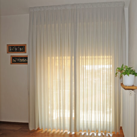 L’articolo 250100 è un tendaggio schermante in tinta unita, molto versatile, realizzato in 300 centimetri di altezza e rifinito con eco piombo.