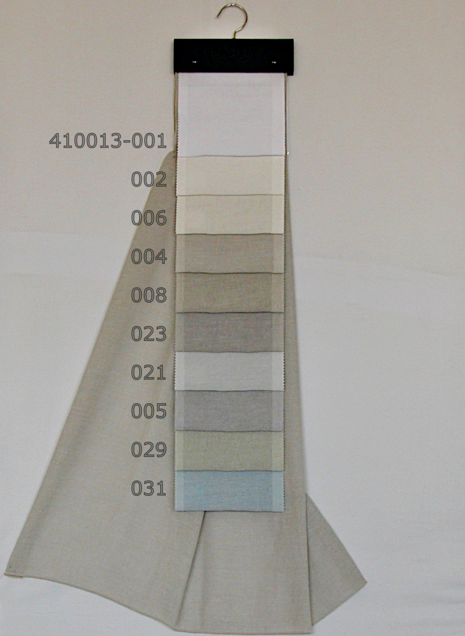 L’articolo 410013 è un elegante tendaggio in misto lino 20%, realizzato in 300 centimetri di altezza, disponibile in 10 colori.