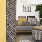 Il disegno geometrico più grande è molto elegante e di forte impatto visivo: le grandi linee a più colori, incrociate tra loro, richiamano l’abbinamento discreto di coordinati, dando ampio spazio alla creatività, per un risultato finale di buon gusto e raffinatezza.