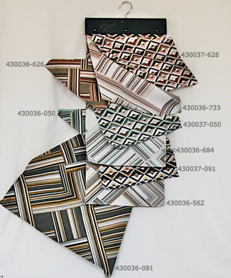 Gli articoli 430036 e 430037 sono due tessuti jacquard coordinati, in misto cotone, realizzati in circa 280 centimetri di altezza, da cimosa a cimosa.
